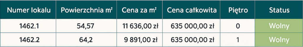 Przedstawiamy aktualny cennik mieszkań w inwestycji przy ul. Łąkowej w Węgrzcach Wielkich.